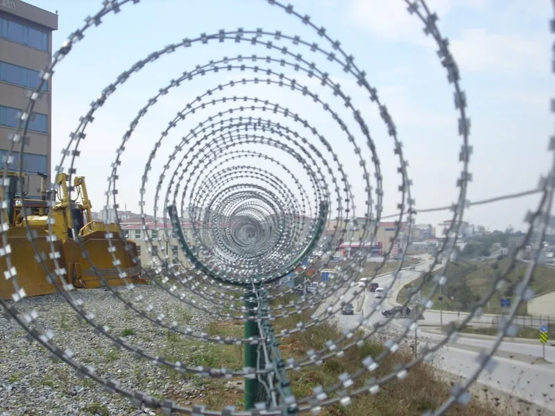 Beton direkli tel çit ya da boru direkli tel çit sistemleri ile sabitlenmiş tel örgülerin ya da alanların güvenlik önlemlerini arttırmak adına düzlemsel jiletli telin ilavesi yapılır. Tel örgünün üstünden istenilen yüksekliğe kadar düzlemsel jiletli telin uygulaması yapılarak güvenlik sistemi maksimum düzeye çıkarılır.